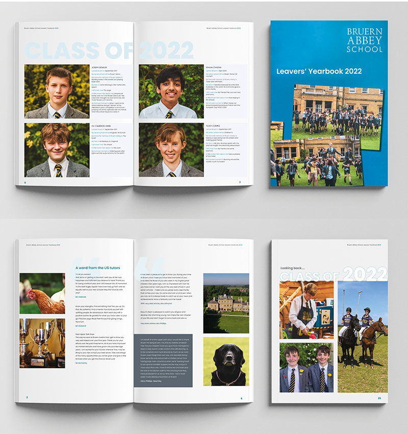 Bruern Abbey is a school for boys with Dyslexia, Dyscalculia and Dyspraxia based in Oxfordshire. I designed, managed and produced the leavers' yearbook for 2022. Also commissioned and managed the photographer and the printer who worked along side me.